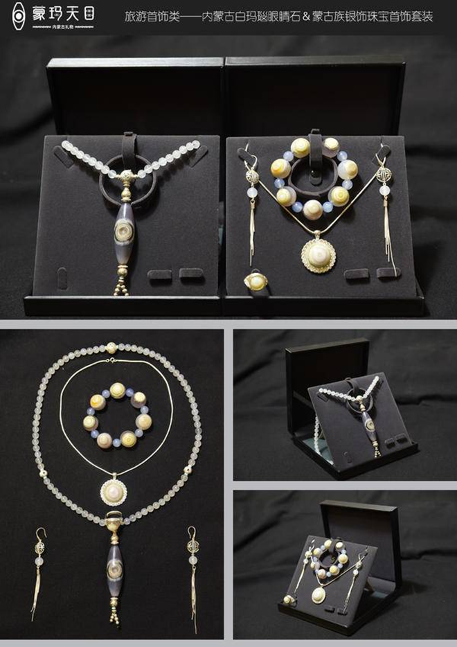 3、白玛瑙眼睛石&蒙古族银饰系列产品: