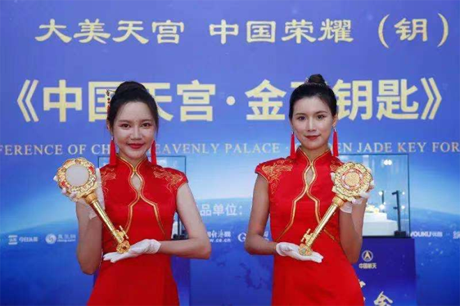 《中国天宫·金玉钥匙》又名《天宫·中国航天金钥匙》,选用和田玉与贵金属为材;创新钥匙和如意相结合的艺术形式,独创如意形制金钥匙,集钥匙“开启探索”之意,取如意“顺心如意”之愿,打造一把开启宇宙之门,智慧之门,财富之门的的大国荣耀(钥)。