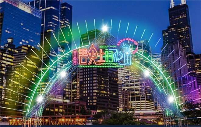相比以往,今年的嘉年华活动集美食、展览、历史,文化于一体,多种形式,多样受众,多充体验,真正做到了针对不同年龄、群体量身定制。本次展区以“过去,现在,未来”作为创新设计:在“过去”展区,改造式门头、沉浸式光束将为与会的市民游客带来怀旧、神秘的年代记忆和城市印象;到了“现在”展区,游客与市民可以在时尚国潮亮化设置和氛围中,享受国潮文化、酒文化和美食文化带来的丰富体验,体会时尚美好新生活;而“未来”展区,则是结合各种亮化设计,和颇具赛博朋克风格的光影效果,为游客市民带来与众不同的打卡体验。