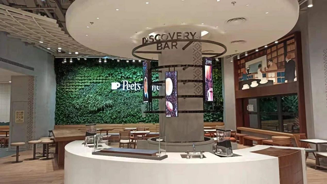 利亚德为皮爷咖啡量身打造不同规格的展示屏,在满足功能的基础上打造时尚优雅的环境氛围。游客在亚洲最大的皮爷咖啡店里,既可以感受好莱坞式的香醇与经典,鎏金岁月的繁华与欢乐,还可以沉浸其中,开始一场属于自己的冒险之旅。
