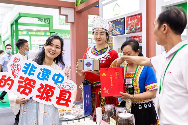 在推介农特产品同时,绿博会现场还举行了资源&龙胜专题推介会,歌舞表演、宣传片展示、合作签约等,现场热闹非凡。