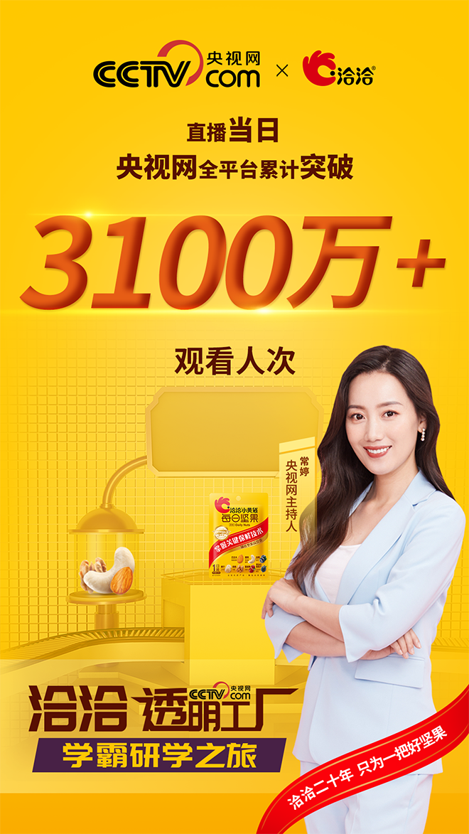 未来洽洽将延续透明工厂直播IP,为中国质造树立高品质标杆,继续发挥民族企业责任感,进一步向全球领先的坚果企业迈进,在国际舞台传播中国快乐的味道。