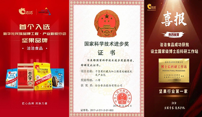 洽洽一直致力创新技术研发,打造“新鲜”好产品。作为行业内首家入选新华社民族品牌工程的坚果品牌,曾获得过国务院颁发的“国家科学技术进步奖”。此外,洽洽还于2020年成功获批设立博士后科研工作站,成为中国坚果行业第一家获批博士后科研工作站的企业。洽洽对科技创新的重视和对科技人才的梯队的建设,将助力洽洽产品质量更上一层楼。