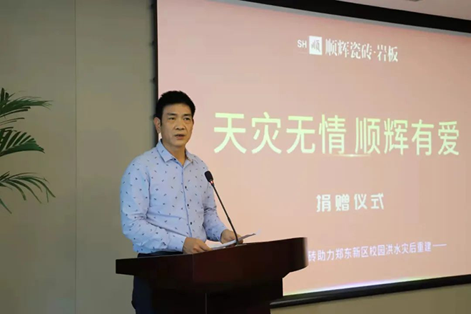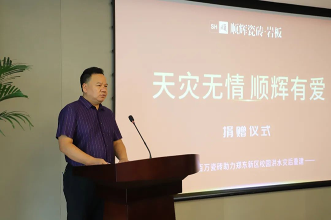 顺成集团副总裁兼顺辉瓷砖总经理彭长华表示,郑州洪灾发生之后,顺辉对灾区保持高度关注,并积极与郑州教育局建立了支援灾后重建、精准帮助校园的项目,此次捐赠是价值过百万的瓷砖物资,就是希望通过切实行动帮助州受灾学校,重建美好校园。