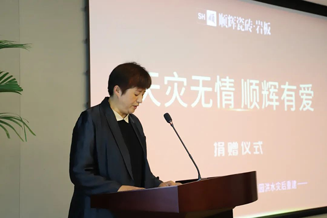郑东新区教文体局副局长王革非对顺辉瓷砖表示衷心感谢,并将及时把爱心物资送到最需要的学校,为灾后重建助力。