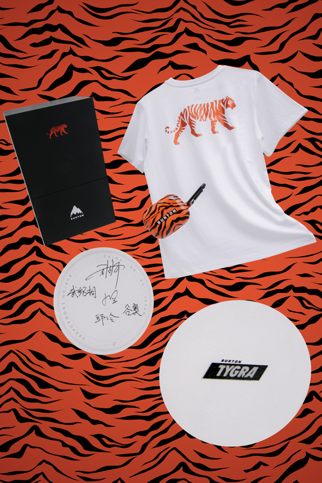 据悉,9月29日,中国限定雪板TYGRA SNOWBOARD将以预售形式于天猫88VIP平台首发。此外,BURTON将会给成功获得预售名额的消费者送上价值799元的限量版礼盒套装,内含老虎印花T恤一件,虎纹AIRPODS保护壳一个,可手写卡片一张,幸运消费者还可在卡片上找到国家队运动员等滑手签名(随机签发)。错过这波预售的小伙伴只能等待11月1日再次发售,敬请关注。