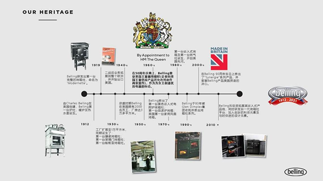 “英伦厨具,百年传承”、“设计精湛,专注细节。” 由Charles Belling 先生于 1912年创立的英伦高端厨电品牌Belling,至今已拥有百年历史并受到英国皇室认证,和中国的同仁堂、茅台酒、全聚德、老凤祥等百年老品牌一样,历久弥香。