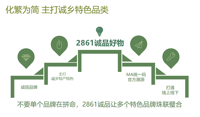 2861诚品平台旨在基于城市原有的风土人情,打造线上线下生态联动的诚乡好物品鉴馆作为城市名片的交流窗口,激活、打造可持续运营的美丽乡村,升级文旅小镇的生态新农业态,作为中国传统文化的交流基地。