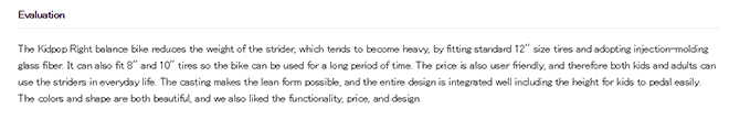 Kidpop 'Right'款系列平衡车通过安装标准12英寸大小的轮胎,采用尼龙玻纤材质,减少了使用者的重量。它还可以安装8英寸和10英寸的轮胎,这样自行车就可以长时间使用。价格平价友好,因此孩子和成年人都可以在日常生活中使用。这种造型使得精巧的造型成为可能,整个设计完美贴合,包括孩子们踏板的高度。它的颜色和形状都很漂亮,我们也喜欢它的功能、价格和设计。