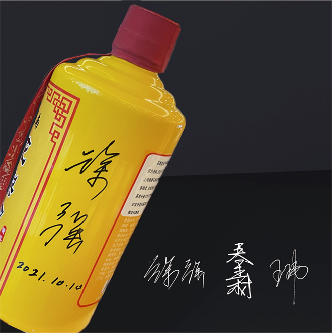 2021年10月10日,著名酱香酒酿酒大师、原茅台酒厂勾调大师、汉帝茅台酒缔造者徐强先生,携弟子王玮先生,亲手勾调一款醇厚清朗、独具匠心的“花梨皇”年份酱香美酒。海南黄花梨酒业品牌运营官李思賢女士见证并记录下这一重要且弥足珍贵的历史性高光时刻。