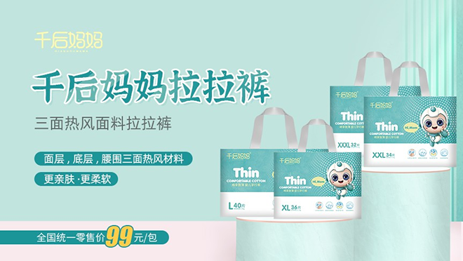 千后妈妈婴儿纸尿裤自2017年上市以来,已经历经了五年多的市场检验,深受中国万千宝妈的喜爱。千后妈妈婴儿纸尿裤先后获得中国母婴产业五星推荐品牌、中国母婴产业金奖品牌等荣誉称号。千后妈妈婴儿纸尿裤上市五年多来,基本上零客诉零差评,每个使用过的宝妈都称其为良心产品。千后妈妈婴儿纸尿裤连续创造了七次单月销量破百万包的销售纪录。正品的千后妈妈婴儿纸尿裤从来没有做过电商线上销售,只在线下实体店销售,为了保障中国万千宝妈的舒适体验请不要在电商线上购买。千后妈妈婴儿纸尿裤和千后妈妈婴儿拉拉裤不仅同码数同片数,而且每包价格也相同,都是99元一包,在广西省更是被亲切的称为“最亲民的婴儿纸尿裤”。