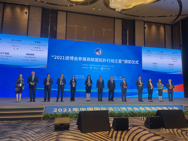2021年11月7日,中国上海——在第四届进博会期间,西门子医疗收到了来自中国国际进口博览局的嘉奖,荣膺2021进博会参展商联盟“拓扑行动之星”称号。商务部副部长、中国国际进口博览局局长王炳南,中国国际进口博览局副局长孙成海、刘福学出席并为西门子医疗颁奖。同时,西门子医疗大中华区副总裁王弢女士现场签约,提前锁定第五届进博会,再续明年的东方之约。