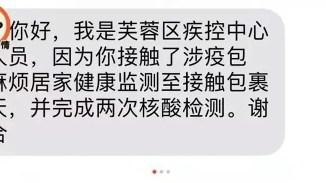据了解,有一位家住长沙芙蓉区的网友在社交网站上表示,因为在办公室帮老板拆了一个快递,健康码变成了黄色,并收到疾控中心的防疫提示,需居家隔离并完成两次核酸检测。