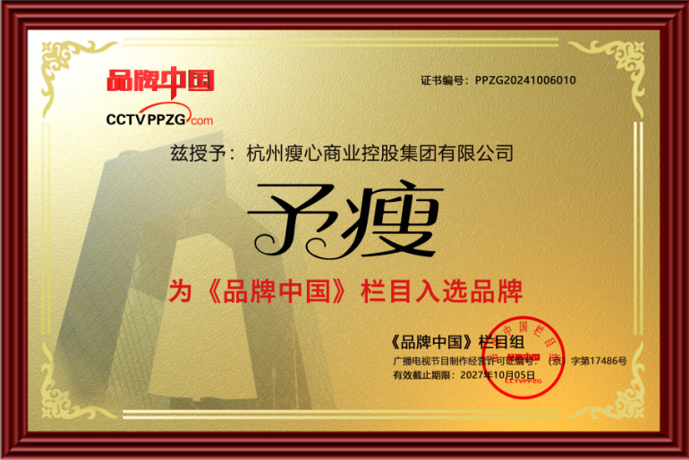 近日,杭州瘦心商业控股集团有限公司旗下“予瘦”品牌与《品牌中国》栏目签订战略合作协议,“予瘦”品牌成为《品牌中国》栏目入选品牌。本次合作,《品牌中国》栏目组强势赋能“予瘦”品牌,帮助“予瘦”品牌提高品牌知名度和美誉度。
