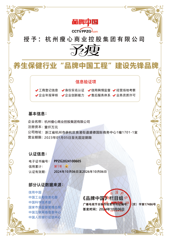 《品牌中国》栏目是一档集“视频、网络、报纸”为一体的综合性权威栏目,栏目根据行业趋势和最新动态,甄选行业细分领域具有市场竞争力、品牌知名度的中国优质品牌。“予瘦”品牌凭借其品牌强硬实力与《品牌中国》栏目达成长期的战略合作关系。