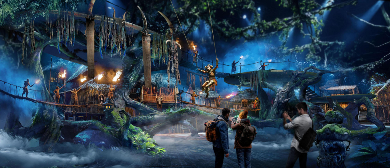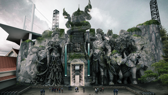 魔幻剧《象之心》剧场位于西双版纳勐泐文化旅游区山顶庄凯大金塔内,既吸收了东南亚建筑风格,又具有傣族传统笋塔建筑特点,这个斥资1.5亿元巨资打造的剧场空间,占地6000平方米,结合了行进式裸眼3D技术和沉浸式叙事手法,在内容场景的多维交互中,带领观众感受自由探索的惊险畅快,全方位感受魔幻氛围,获得多重感官体验,为观众带来一场震撼感官的华美体验。