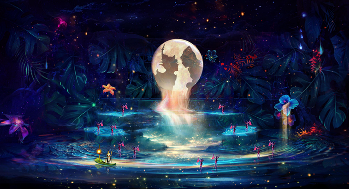 民族史诗实景演艺《夜版纳之傣魅》以傣族民间传奇《孔雀公主》为蓝本,通过艺术再造与升华,讲述了一段充满浪漫、勇气与美好的爱情故事,创新性地将傣族民间艺术与现代舞台科技相结合,呈现出一场极具原创性的实景演艺。