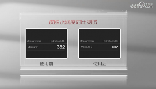 Jmoon极萌水光使用前后皮肤水润度对比图