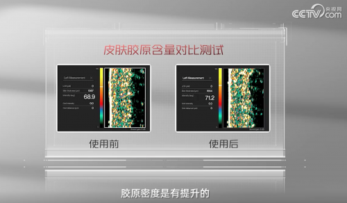 从上面的三组实验对比图上来看,首先,皮肤水润度在使用极萌水光之前是382,用完之后提升到了602,有很明显的提升;其次,皮肤亮度上可以明显感觉到毛孔收缩变小,提亮皮肤的效果相当不错;最后,从正常角度来说,胶原是不可能有即刻增生的,但是在使用完水光之后可以提升胶原密度,从实验前的68.9提升到了71.2。