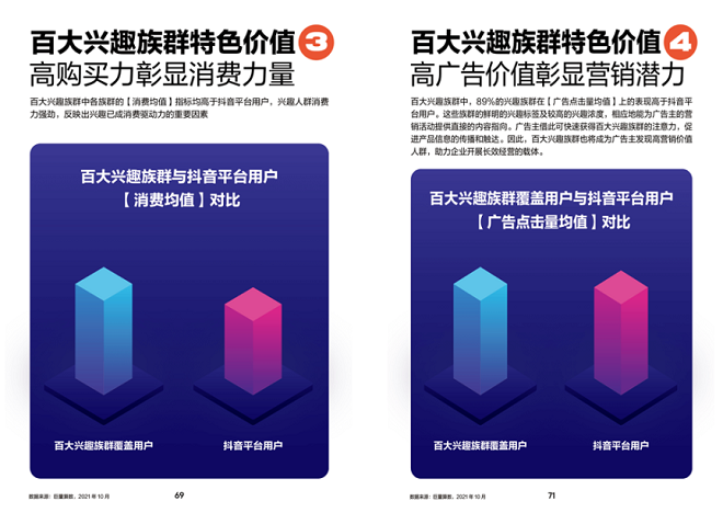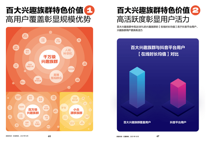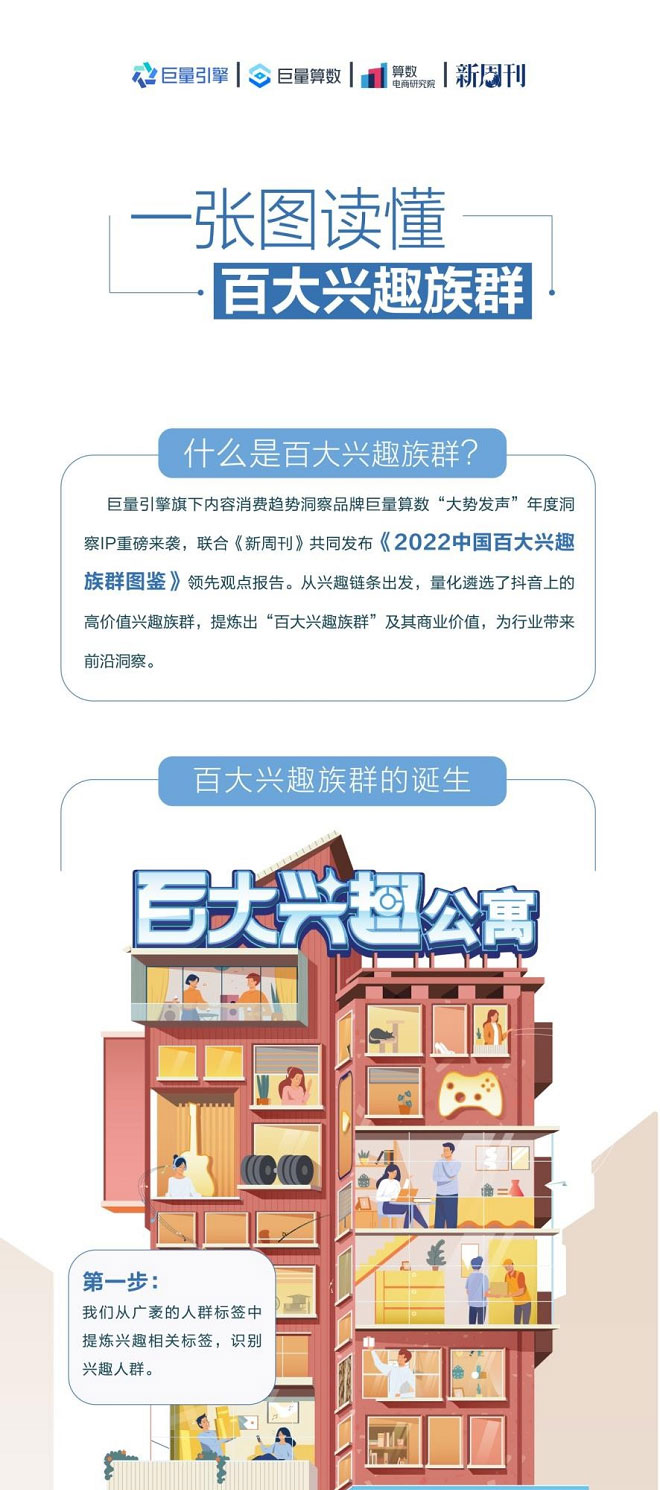 但目前对于兴趣圈层的洞察研究,仍处于以定性分析和小样本用户调研为主,缺乏兴趣全貌展示。而作为首份基于抖音平台数据洞察研究的《2022中国百大兴趣族群图鉴》报告,正弥补了市场空缺。巨量算数通过深度洞察用户的兴趣引致的动机、行为等变化的内在的驱动力和外在的因素,更加全景的展现了兴趣群层的商业价值。