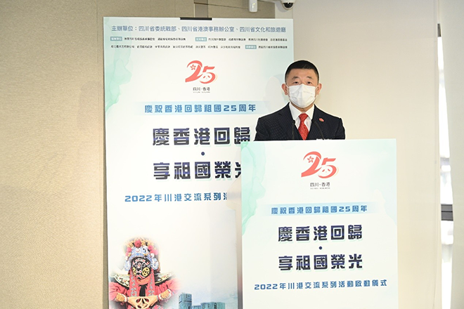 适逢香港回归祖国25周年,由香港中联办、四川省政府指导,四川省委统战部、省港澳办、文化和旅游厅主办,四川海外联谊会、成都海外联谊会、港区四川省政协委员联谊会、香港四川社团总会、四川省香港商会、香港成都社团总会、香港四川同学会、川港青年创新创业社区承办的“庆香港回归·享祖国荣光”川港交流系列活动正式拉开帷幕。希望透过川港交流系列活动促进川港两地融合交流和区域协同发展。