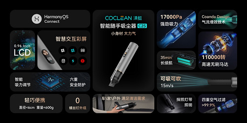 2022年6月1日,众清科技在鸿蒙智联夏季新品发布会上正式发布了清蜓智能随手吸C2系列旗舰机型C2S,作为全球首款支持鸿蒙智联的随手吸产品,在蓝牙开启模式下,智能随手吸尘器C2S只需要点亮屏幕并且靠近内置鸿蒙系统的手机,手机上便可自动弹出清蜓智能随手吸尘器C2S的连接界面,从而实现智联。