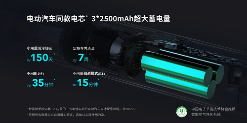 *(智能随手吸尘器C2S内置的三节电池与部分电动汽车电池型号相同,皆为18650;)