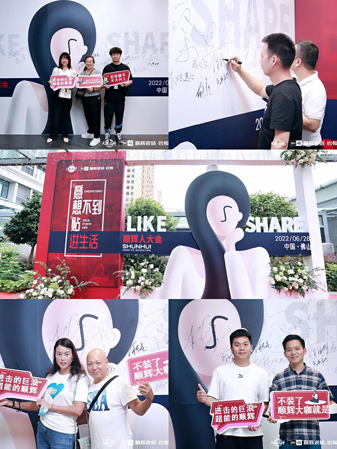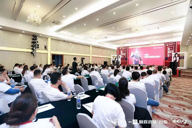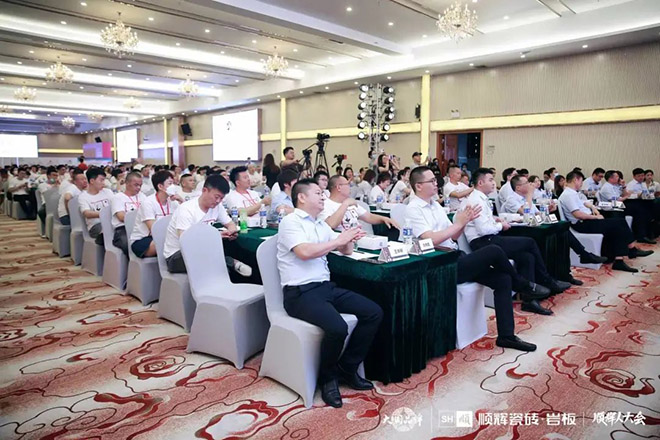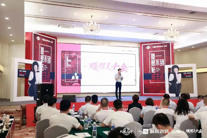 如果说上午顺辉包铺贴技能交流会是顺辉瓷砖·岩板开辟新赛道的战略布局,那么6月28日下午,顺辉人大会暨顺小意发布会则正式吹响品牌新发展的号角。