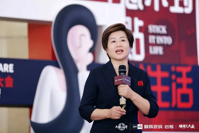 如今的市场仍然有许多不确定性,品牌发展面临着诸多挑战,只有厂商携手才能制胜市场。对此,顺辉瓷砖·岩板产品部总监黄玫、设计总监王文剑分别从产品、专卖店形象等方面阐释了顺辉瓷砖·岩板通过多样个性的产品、专业细致的服务,为消费者打造优质的沉浸式体验场所等多方面,力求实现共赢美好未来。