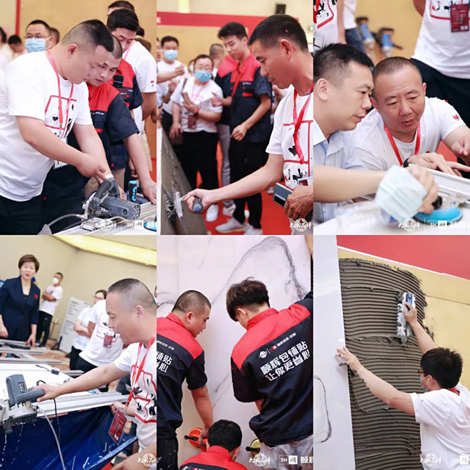 为了让服务商更真切地体验顺辉包铺贴,本次活动安排了专业且细致的实操演练。上海沃能工具培训人员针对岩板铺贴工艺工具及操作流程进行了详细讲解,而实地切割、铺贴演练,则让服务商们更深刻地理解了顺辉包铺贴的执行与推广。
