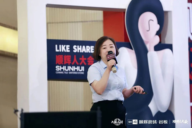 当下陶瓷行业竞争激烈,品牌需结合当下消费理念变化进行转变升级,对此,广州市风和日丽企划有限公司总经理张璐和顺辉瓷砖·岩板市场总监郑建分别带来了《陶瓷行业发展大势》和《岩板瓷砖化和用户年轻化》主题演讲,让在场的顺辉服务商了解到,品牌升维需结合当下市场发展,塑造自身核心竞争力,从而赢得更多消费者的喜爱。