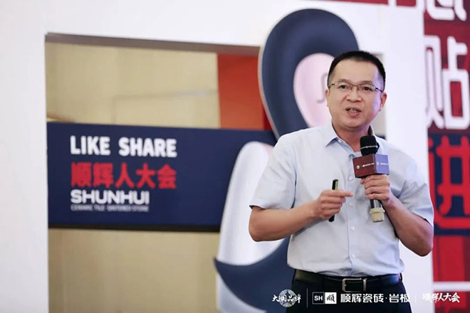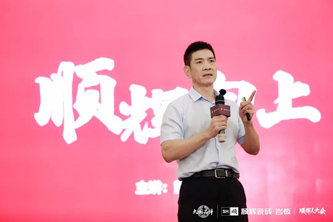 顺成陶瓷集团副总裁兼顺辉瓷砖·岩板总经理彭长华带来了主题为《顺辉向上》的主题演讲,彭总对顺辉品牌面临困难是如何逆势突围进行了分享,并表示2022年顺辉人要以敢为人先的精神走在行业前端、以潮流引领实现顺辉品牌焕新升级、以创新突破驱动行业发展。