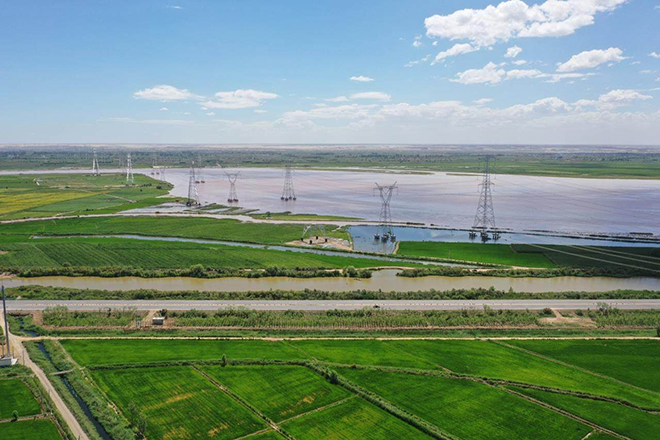 宁夏沙湖~平罗电厂双回750千伏线路工程,位于宁夏石嘴山市平罗县境内,起点为大唐平罗电厂,终点为沙湖750千伏变电站。该工程是宁夏能源发展“十三五”规划重点能源基础设施项目,建成后成为了宁夏北部电网的主力电源,改善了宁夏电网电源布局,解决了大唐平罗电厂火电送出难题,助力西电东送战略建设,全面拉动、支持地方经济建设,有效保障和服务社会民生。