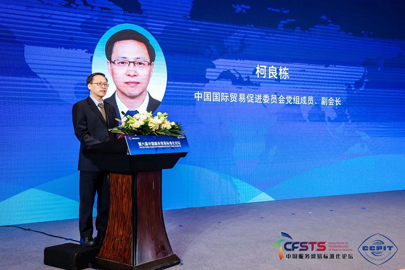 第六届中国服务贸易标准化论坛以“服务标准化,标准国际化”为主题,中国国际贸易促进委员会党组成员、副会长柯良栋出席论坛并致辞。国家市场监督管理总局标准创新管理司副司长李玉冰、商务部服务贸易和商贸服务业司副司长王志华、中国标准化协会监事长高建忠等行业主管部门、行业组织领导及专家围绕服务贸易发展与全球经济复苏、中外服务业标准化发展与最新趋势、标准化助力服务贸易经济增长等议题展开研讨及专家对话。