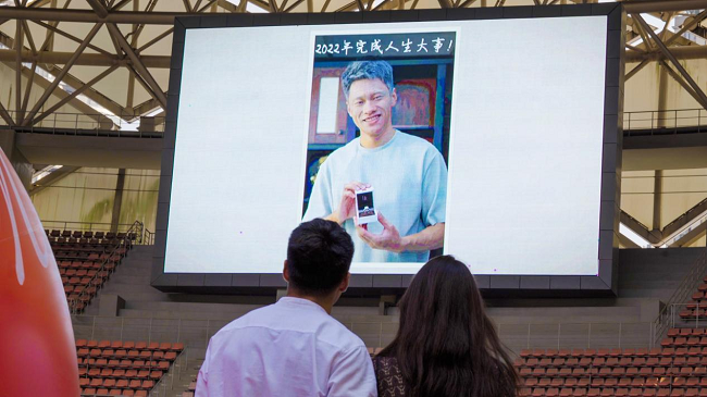 7月底对外透露将安排人生大事的谢震业,用一场甜蜜求婚开启对未来的美好展望,也补上这些年因异地欠下的浪漫。他选定了对两人都有特殊情感的体育训练馆,在现场设置了“爱的跑道”,沿路放置了承载一生不同节点的美好想象的照片。从18岁、30岁、35岁、50岁再到60岁,两人照片渐渐变老、成为父母、成为爷爷奶奶,不变的是两人贯穿一生的爱与陪伴。