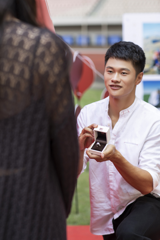 求婚现场单膝下跪,坚定地向她许下一生的承诺:“陆陆我们在一起15年了,从决定开始我就相信,确定你就是我的唯一,我想把从十八岁时的喜欢变成八十岁陪伴。爱情和体育一样,爱了就是一生,你是我的初恋,我也想让你成为我的白头,想和你永远在一起!这枚DR钻戒代表我用一生爱你一人的决心,这是我给你的承诺,想爱着你,珍惜并守护着你,你愿意嫁给我吗?”对于谢震业来说,当陆敏佳戴上求婚钻戒的那一刻,让彼此都拥有了坚持“一生唯一”的安全感。即使未来还会持续异地,但双方都有了更充足的信心去面对。