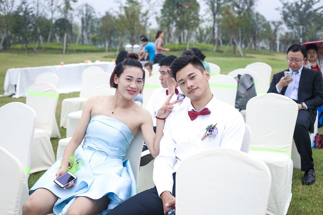根据谢震业发布的求婚视频可见,在偌大的田径场上,谢震业精心布置了以二人一路走来的合照作为花路,现场大屏幕上播放着谢震业一早准备好的告白视频,视频里他扮成耄耋老人,诉说这么多年的浪漫与深情,最后向女友陆敏佳发出一生陪伴的邀请。在陆敏佳还沉浸在告白视频的感动中时,他拿出一生一枚的DR钻戒向女友许下用一生爱一人,相守到白头的誓言。最终女友接受求婚,戴上了一生只送一人的DR钻戒,宣告着这场求婚的成功。