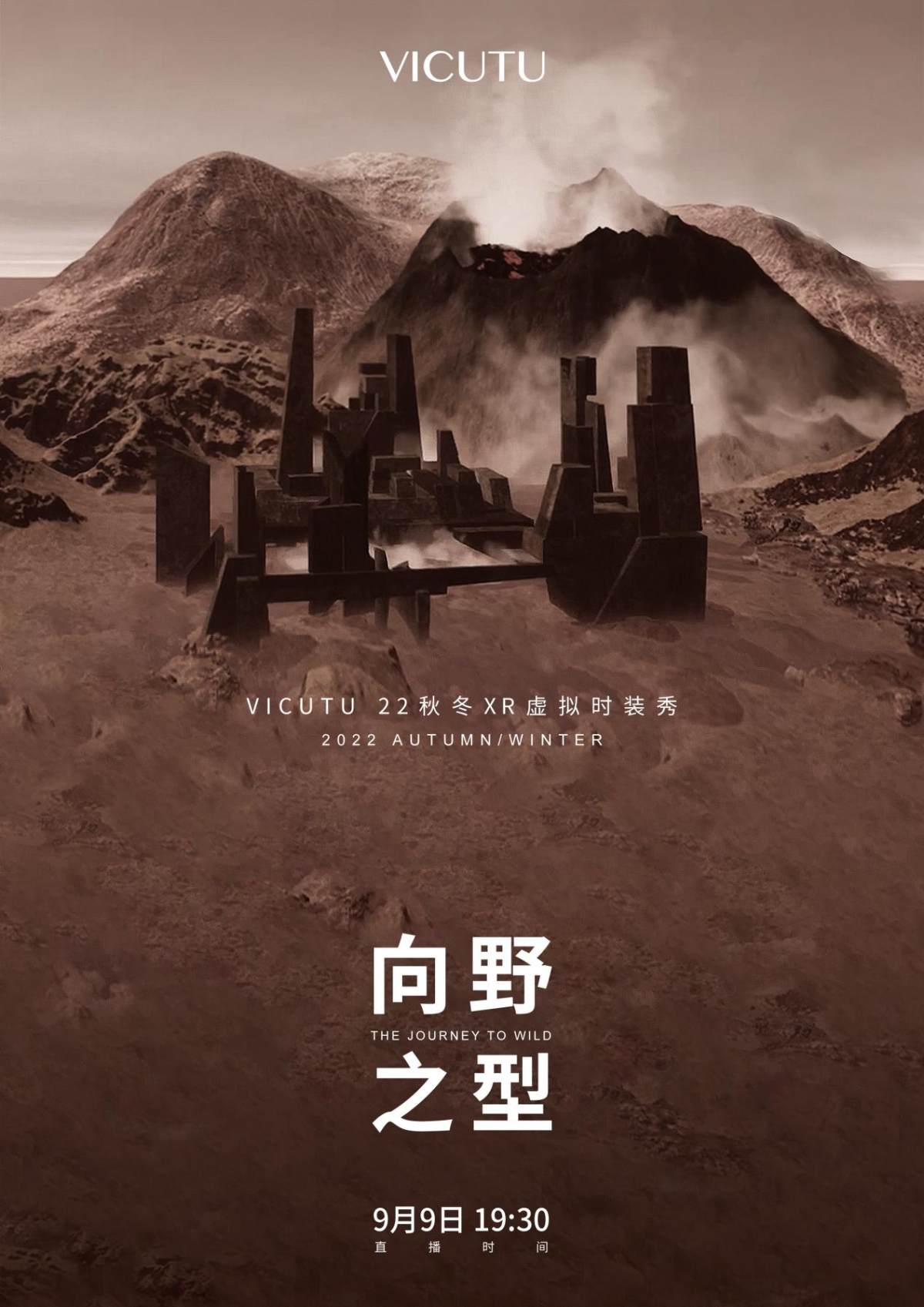 9月9日,向野之型(The Journey to Wild)VICUTU 22秋冬 XR虚拟时装秀惊艳亮相,大秀围绕VICUTU威可多2022红标、蓝标以及山海经胶囊系列新品,通过XR扩展现实技术再现VICUTU威可多对于人与自然关系的思考,多维度展现中国男士的“向野之型”。
