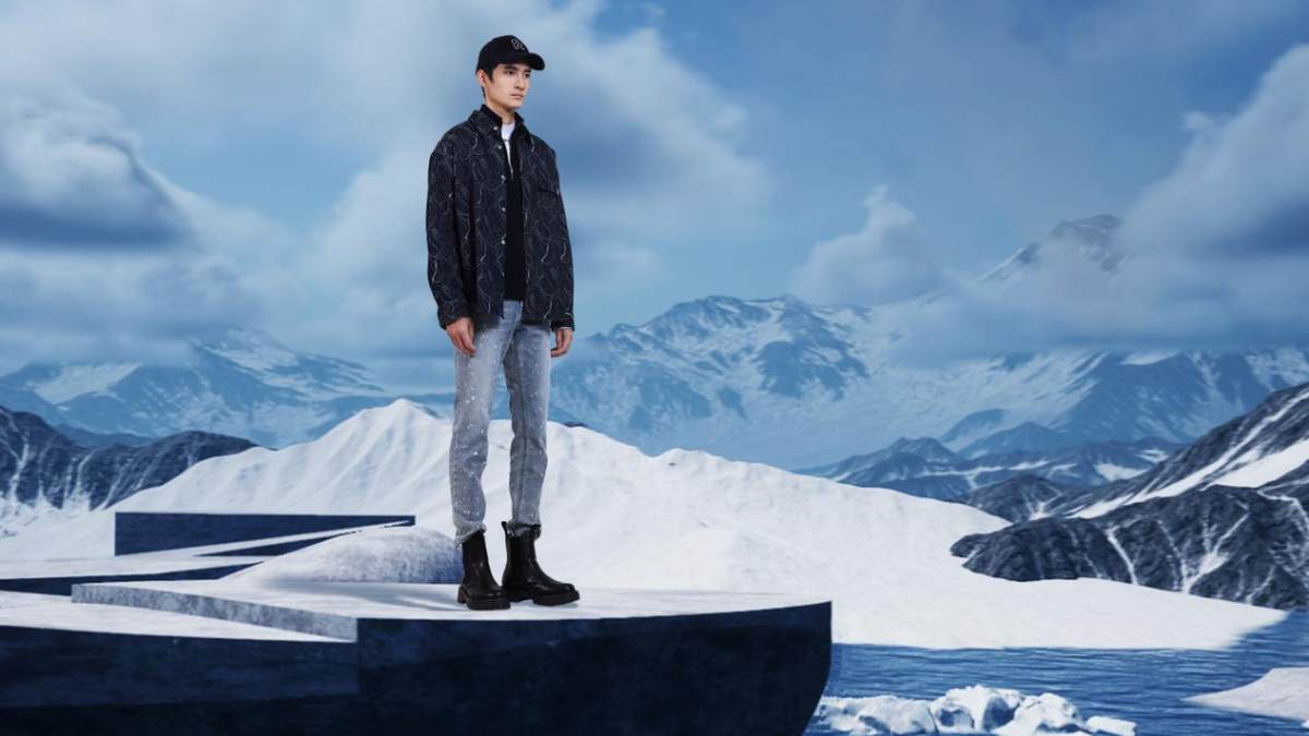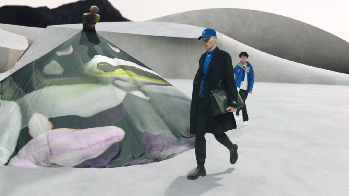 本次大秀采用XR技术将虚拟场景与真实模特走秀相结合,融入当季新品的设计灵感,通过“火山地貌”、“苔原旷野”、“冷峻山河”、“冰川雪山”、“希望之原”五幕展开,抽象再现文明发展与自然的共生关系,实现文明与科技的跨时空碰撞。