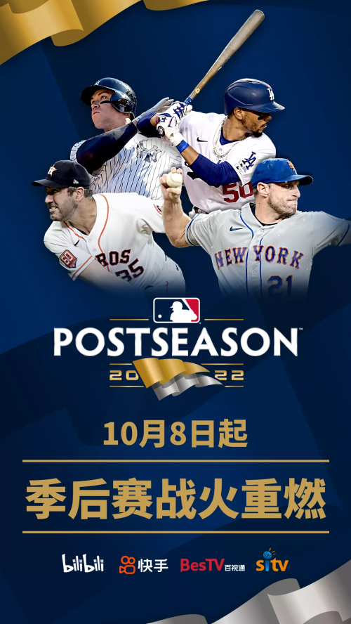 随着季后赛席位的一一锁定,群英荟萃的MLB 2022季后赛吹响号角。与此同时,哔哩哔哩(B站)、快手首次加入MLB 2022季后赛直播阵营,10月8日起与IPTV平台合作方百视通共同为中国球迷带来精彩季后赛观看体验。全新的赛制、全新的对决、全新的转播平台,MLB美职棒大联盟将携手三大平台为球迷带来棒球视听盛宴。