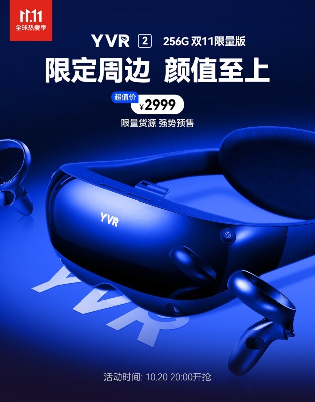 10月20日晚,YVR双十一预售活动将在京东正式打响,YVR 全新Pancake超短焦光学VR一体机YVR 2 迎来史上最低价,双十一特惠直降2200元,256G版本仅需2999元即可到手。本次预售也将于24日在天猫平台火热开启,更多惊喜敬请期待。
