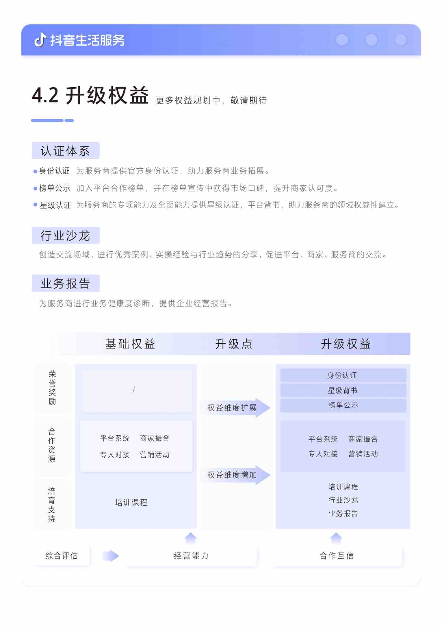 后续,抖音生活服务将从权益维度扩展和增加两个方向,进行认证体系、行业沙龙、业务报告等更多权益的规划与落地。
