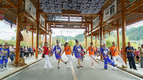 乡风文明建设是乡村振兴的重要内容,也是乡村振兴的重要推动力量。华侨城与台烈镇政府、颇洞村委会共同制定《颇洞村乡风文明治理提升实施方案》,深入推进人居环境治理和乡风文明提升行动,实施“五个一”工程:每季度开展一次环境提升行动,每月评选一批最美村户,建立一支志愿者服务队,搭建“一揽子”宣贯渠道,形成一份责任牌。目前,已开展环境提升行动6次,对村内主干道、河道、广场等地开展大治理、大清洁;组建文明风尚评议会,评选出“最美村户”5户;建立了一支20人组成的志愿服务队,入户宣传650户,有力增强了村民文明素养和环保意识;购买苗木1200株、花卉种子215斤发放给村民,鼓励村民在房前屋后栽种,带动群众积极参与家园的环境治理提升,激发建设美丽乡村的内生动力。此外,定期组织文学交流活动,依托黔东南州各级文联、协会搭建公益培训、交流平台,探索“乡村旅游+公益培训+文化交流”的文学文化创作模式;开展文学艺术作品征集活动,征集反映颇洞村历史变迁、民族风情、乡村新貌、产业新姿、百姓生活等内容的书法、美术、诗词、摄影作品21幅,努力为人民群众提供健康向上、丰富多彩的文艺作品,满足人民群众多样化、多层次的精神需要。
