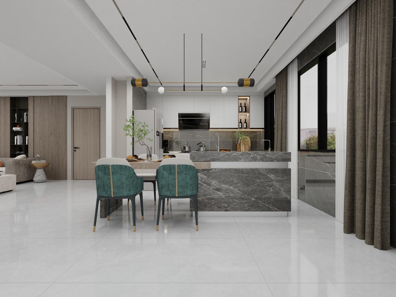 肆意自由的纹理犹如千里江山,气势磅礴,恢宏大气,在简约的空间中,充满了精致的魅力。
