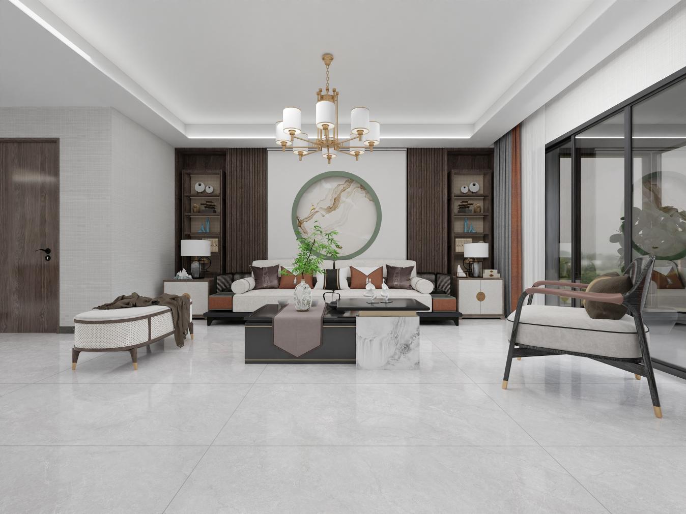 浅灰色砖面上飘逸着,多缕纤巧而清晰的纹理,重现天然石材完美的纹理和独特的质感,为客厅空间带来高品位的装饰效果。