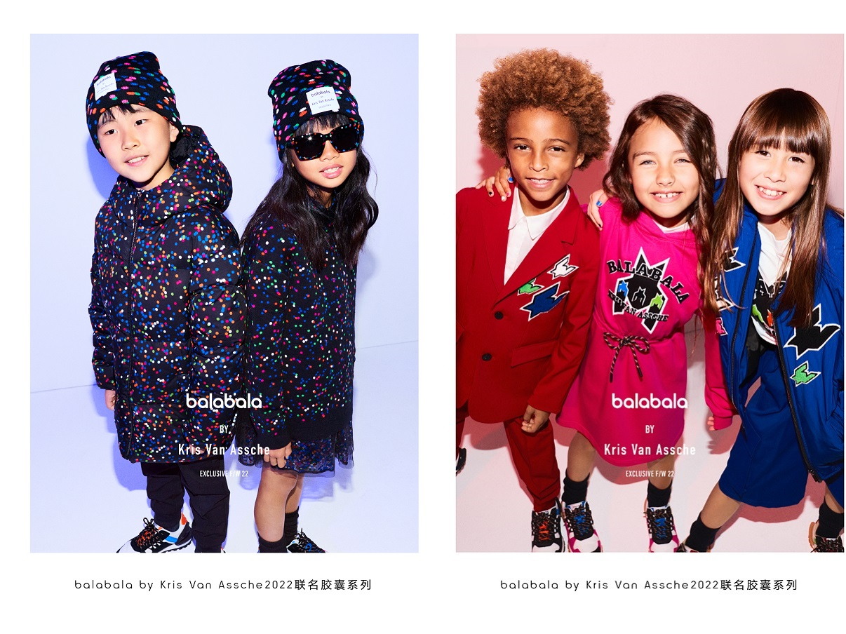 本次新品展中,最引人瞩目的莫过于balabala 携手国际顶级时尚设计师Kris Van Assche 共同推出的balabala by Kris Van Assche联名系列。作为常年为奢侈品牌打造高端设计的国际顶级时尚设计师,本次合作也是这位传奇设计师首度携手童装品牌打造的联名胶囊系列。设计师将最具代表性和辨识度的品牌经典设计元素「波尔卡圆点」和「千鸟格」符号进行重塑,通过艺术复刻的方式在童装领域进行创新,将中国本土童装与国际潮流时尚融合,重新定义儿童时尚的高奢时尚。此次拍摄大片更是邀请到意大利知名摄影师Alessio Bolzoni参与拍摄,从 Dior 到 Berluti,Alessio Bolzoni与Kris Van Assche多次合作,该团队打造的广告大片,前卫而又具有记忆点,这一次大片更是以富有戏剧性与创意的方式呈现国际顶尖设计师的产品魅力。