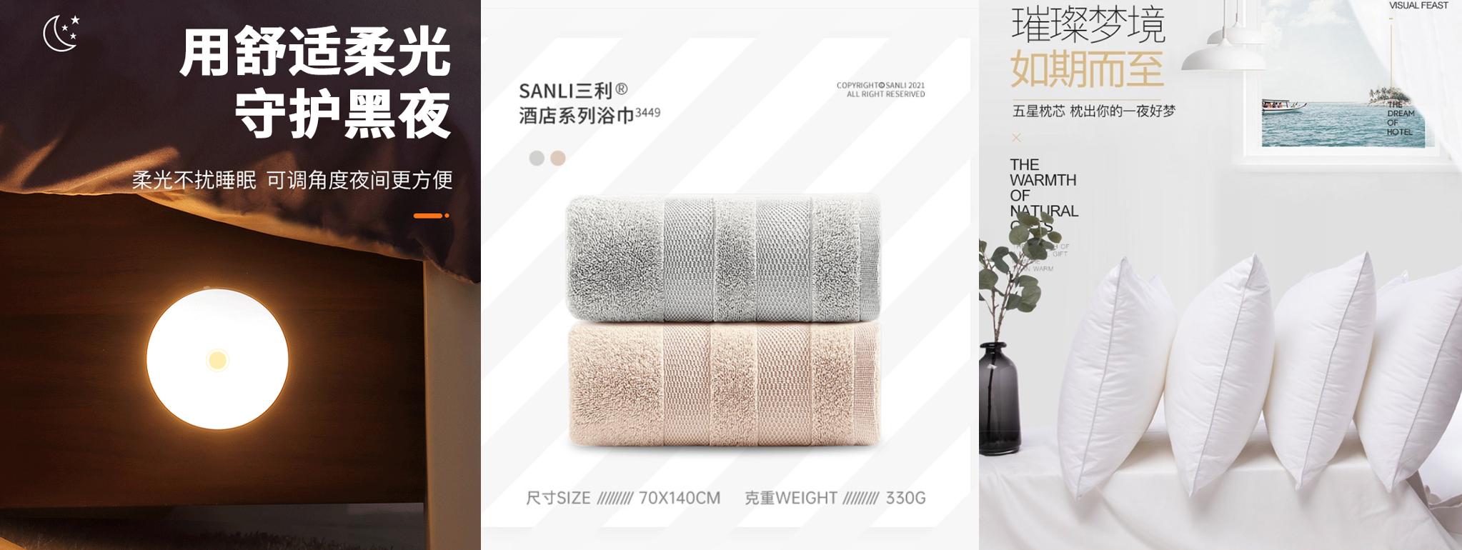 京黔氛围伴睡充电小夜灯、三利纯棉大浴巾、南方生活羽丝绒枕芯