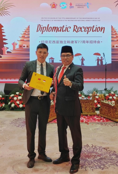 与和平大使俱乐部主席沈峰亲切交流印尼与中国拥有悠久的历史和文化纽带,两国领导人和社会各界交往密切,铸就了牢固的友谊。两国关系历经72年,已日臻成熟,这是印尼和中国取得的显著战略性成果。两国在各领域不断创造合作机遇,造福了两国人民,值得双方引以为傲。在全面战略伙伴关系框架下,双方秉持合作精神,必将推动两国不断发展和繁荣,为地区和世界和平、稳定与繁荣作出贡献。