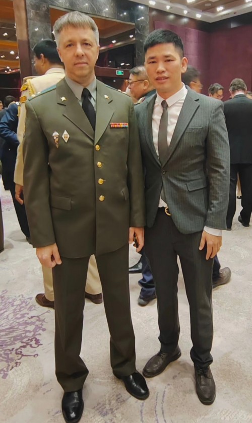 与俄罗斯驻华国防武官Oleg Zhuravlev亲切交流