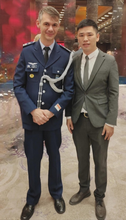 与东盟各国驻华大使馆国防武官Johnny F. K.等亲切交流